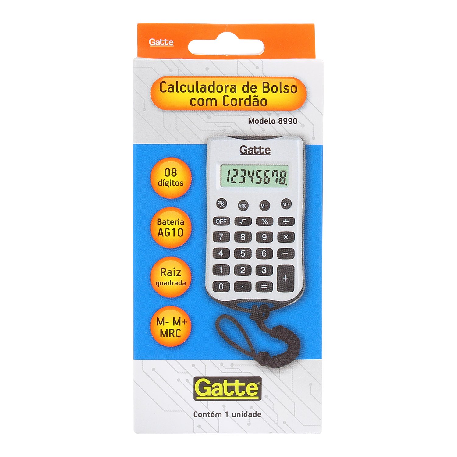 CALCULADORA - 8 DIGITOS c/ Cordão (8990) Emborrachada 99x55x9 - Bateria - Preto quantidade