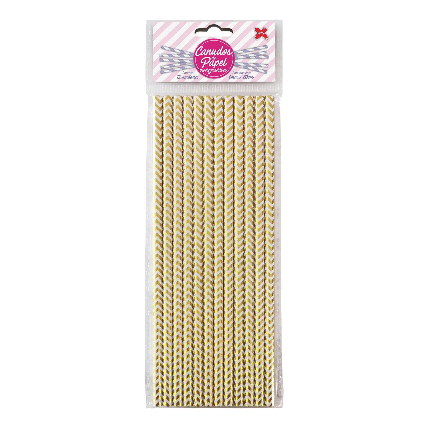 Canudo de Papel 6mmx200mm c/ 12 und - Chevron Ouro quantidade