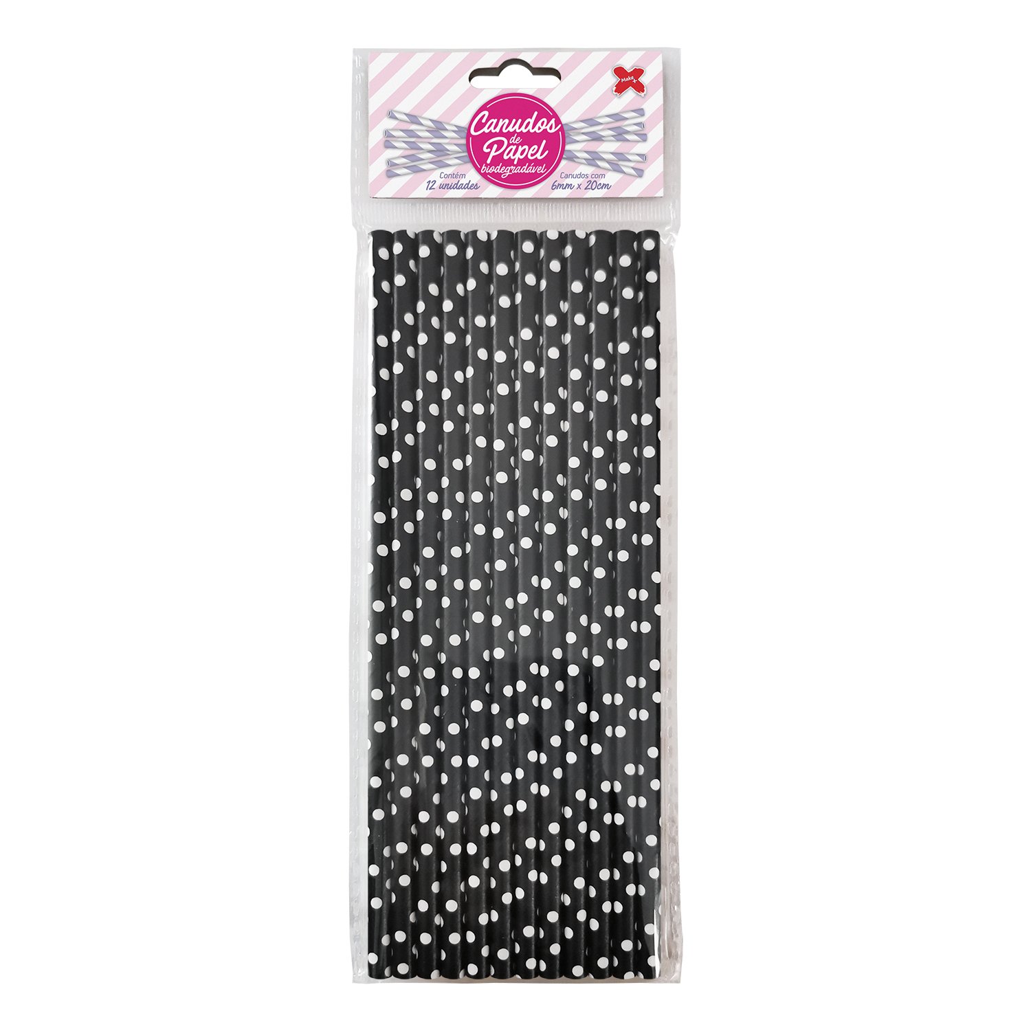 Canudo de Papel 6mmx200mm c/ 12 und - Preto e Branco - Bolinhas quantidade