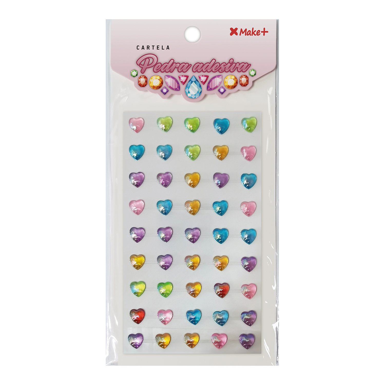 CARTELA PEDRA ADESIVA – CORAÇÃO COLORIDO 10MM”E”