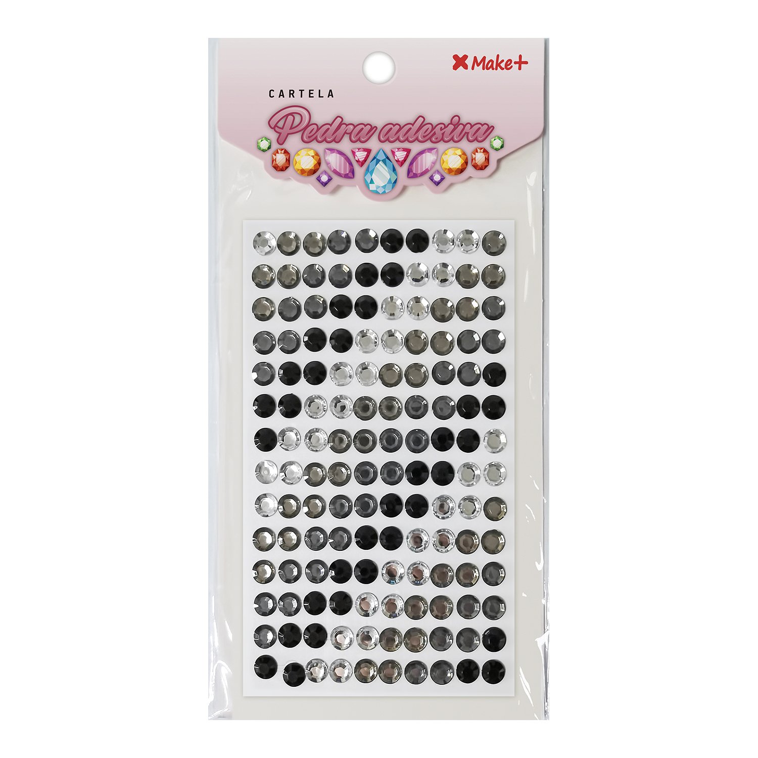 CARTELA PEDRA ADESIVA – MEIA PEROLA 8MM – DEGRADE PRETO “H”