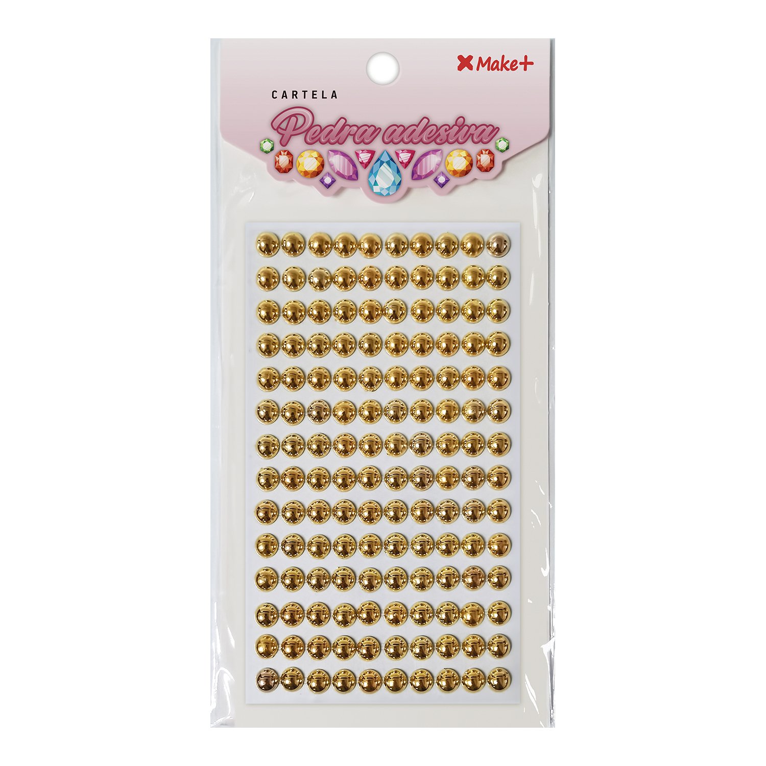CARTELA PEDRA ADESIVA - MEIA PEROLA 8MM OURO METALIZADO "H" quantidade