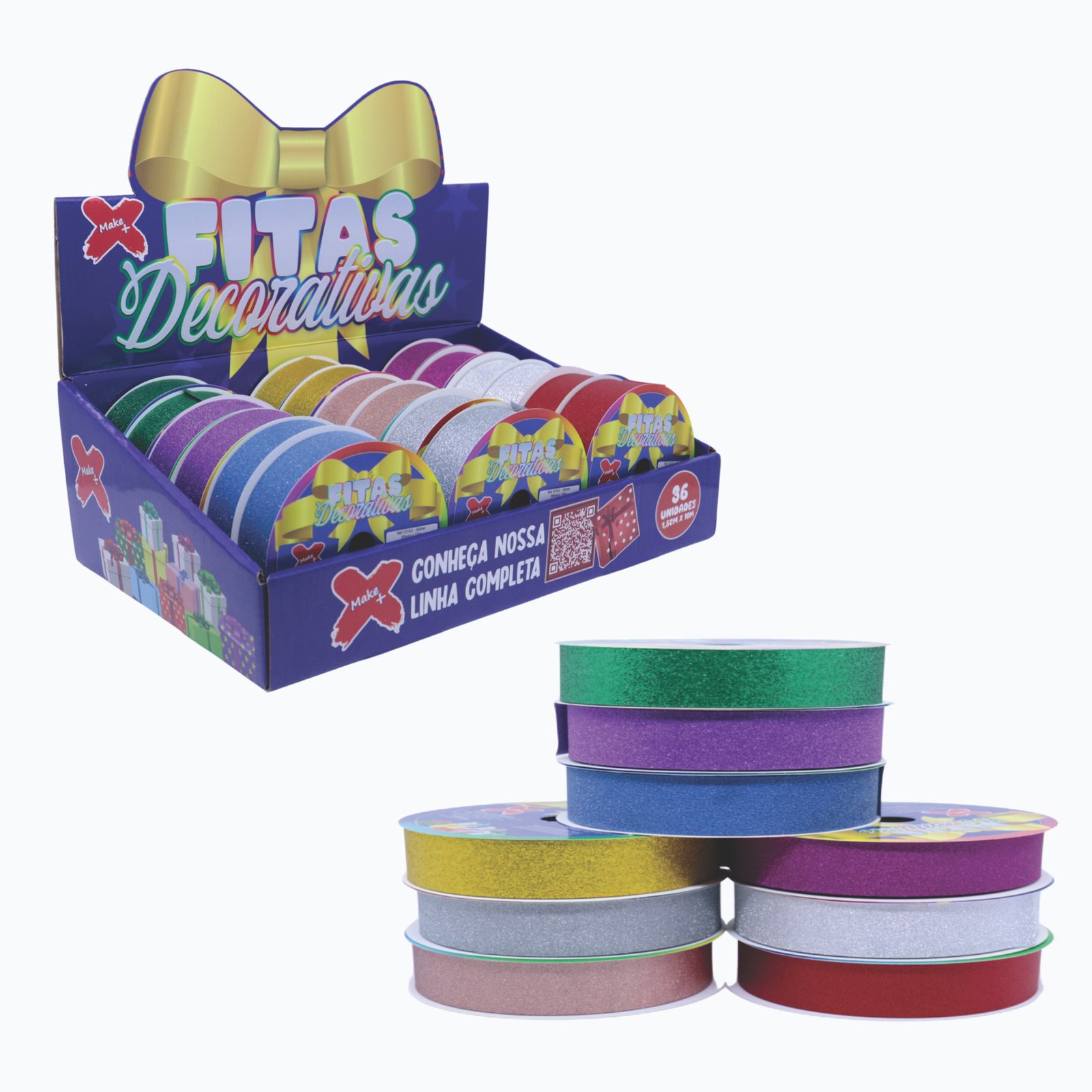 Fita plastica decorativa 15mmx10m - GLITTER - CX C/ 36 (dr,pr,vm,vd es,rx,pk,rs clr,az cl,az es) quantidade