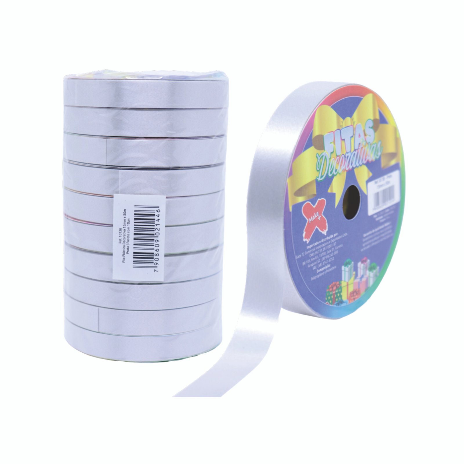 Fita plastica decorativa 15mmx50m - prata - PCT C/ 10 quantidade