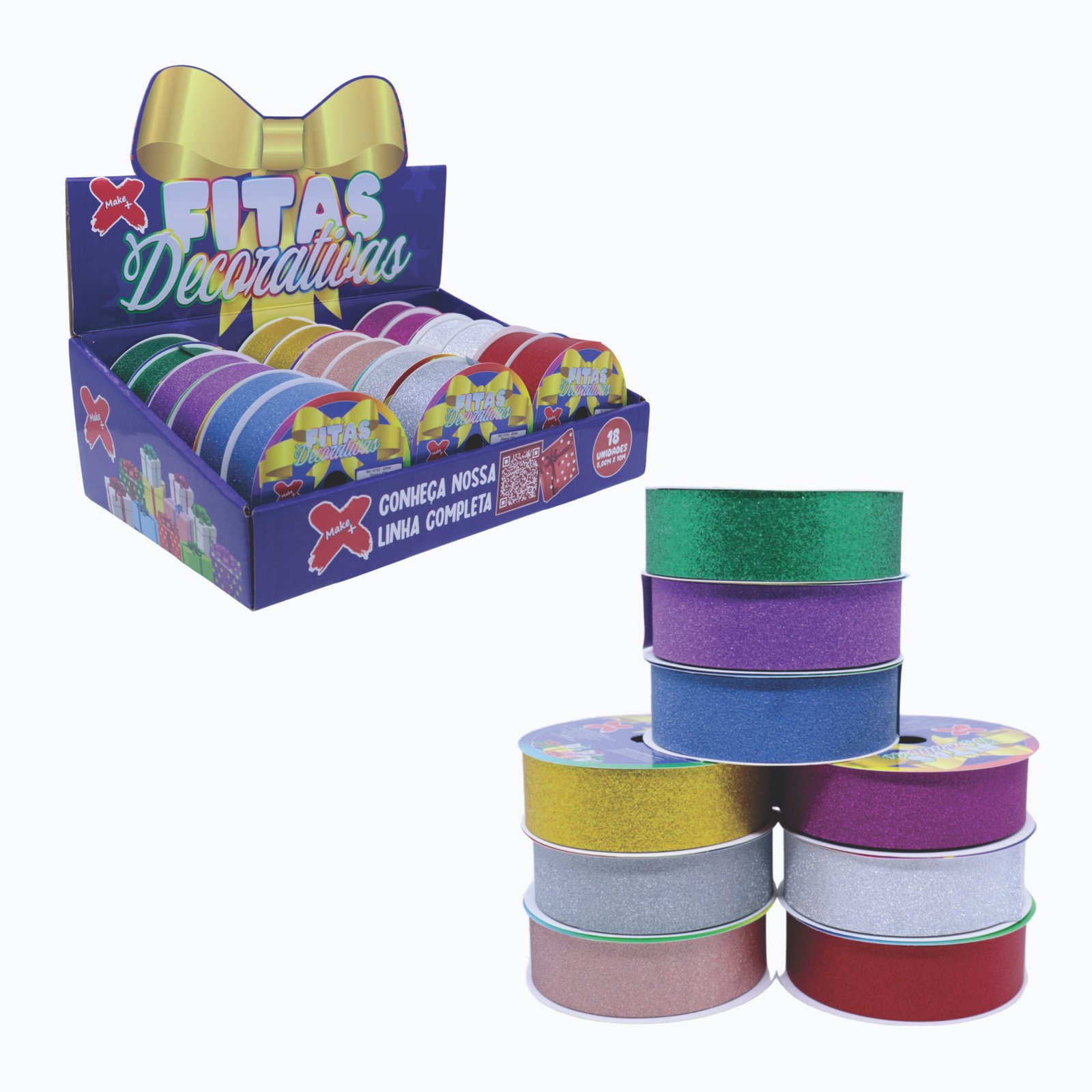 Fita plastica decorativa 30mmx10m - GLITTER - CX C/ 18 (dr,pr,vm,vd es,rx,pk,rs clr,bco,az es) quantidade