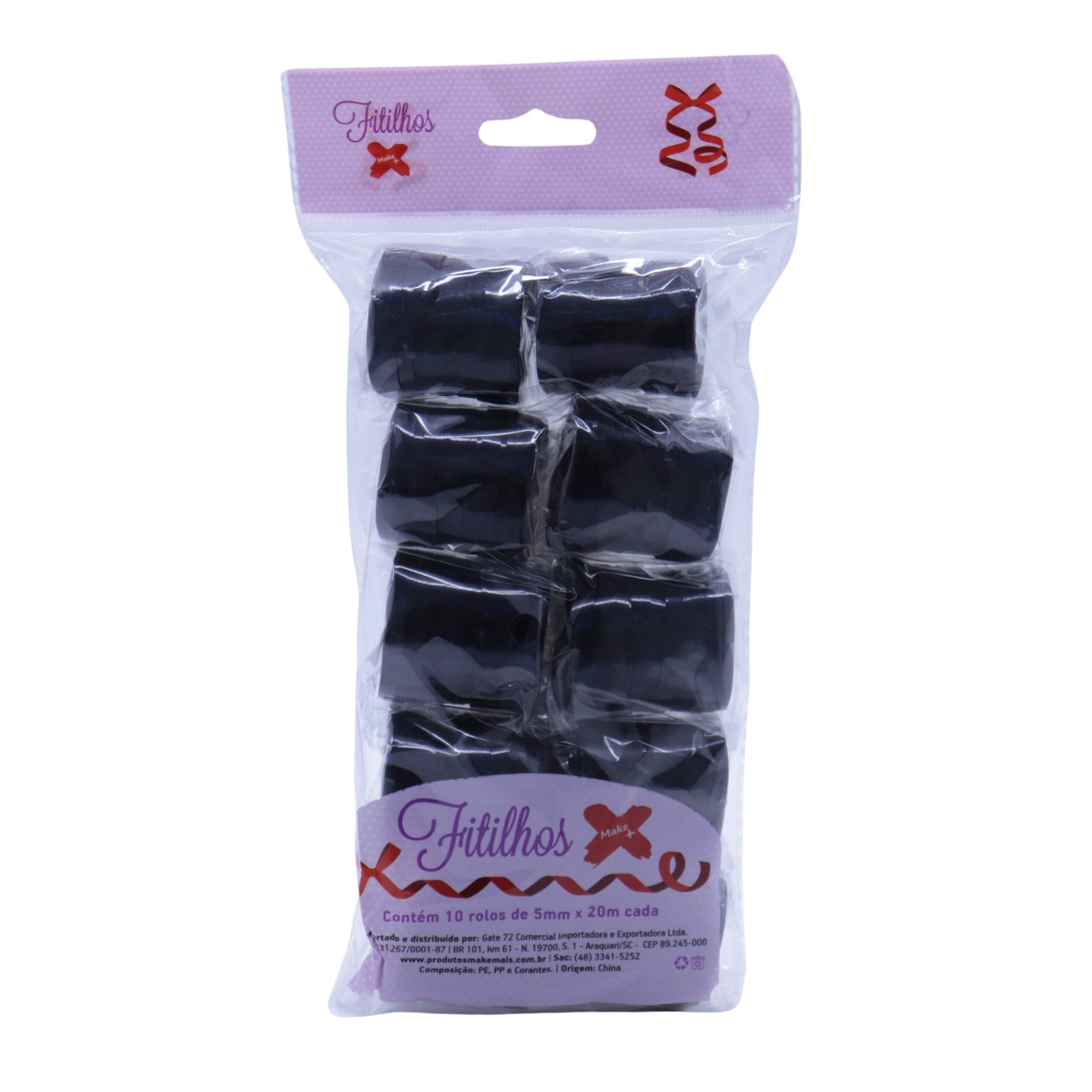 FITILHO 5MMX20M METALIZADO HOLOGRAFICO PRETO – PCT C/ 10 ROLOS