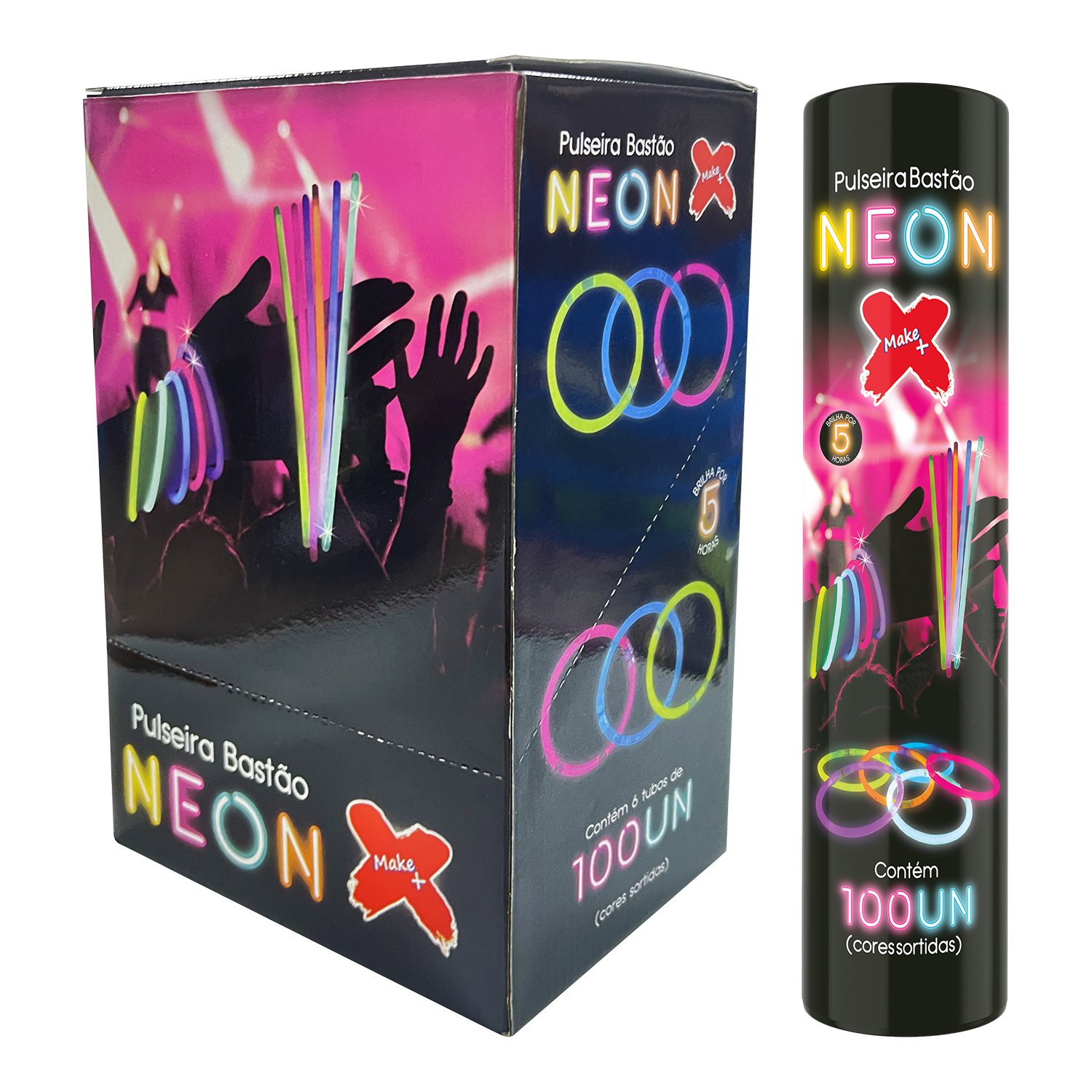 Pulseira Bastão Neon Colorida Tubo c/ 100 – 5h – display c/ 6 tb