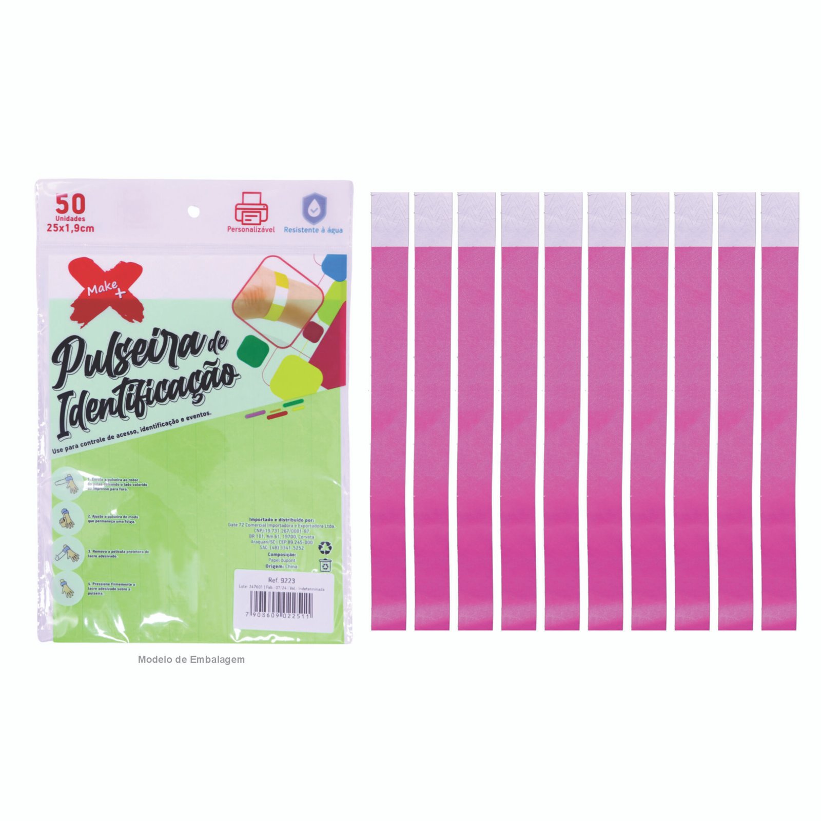 Pulseira de identificação e festa MAKE+ tam 1.9*25cm – PACOTE C/ 50 – ROSA NEON