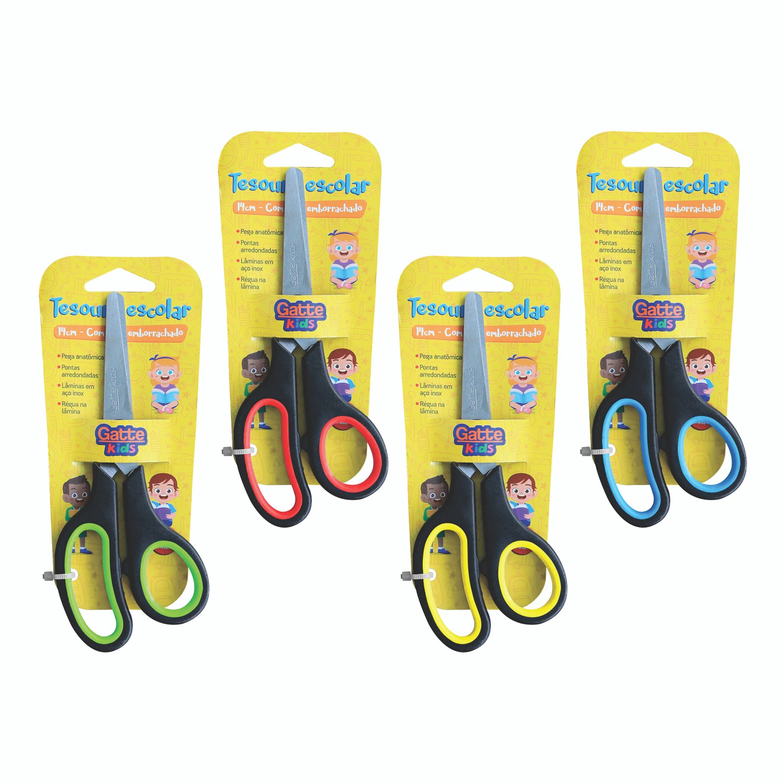 Tesoura Escolar 14 cm Emborrachado 3 dedos cx / 12 und quantidade
