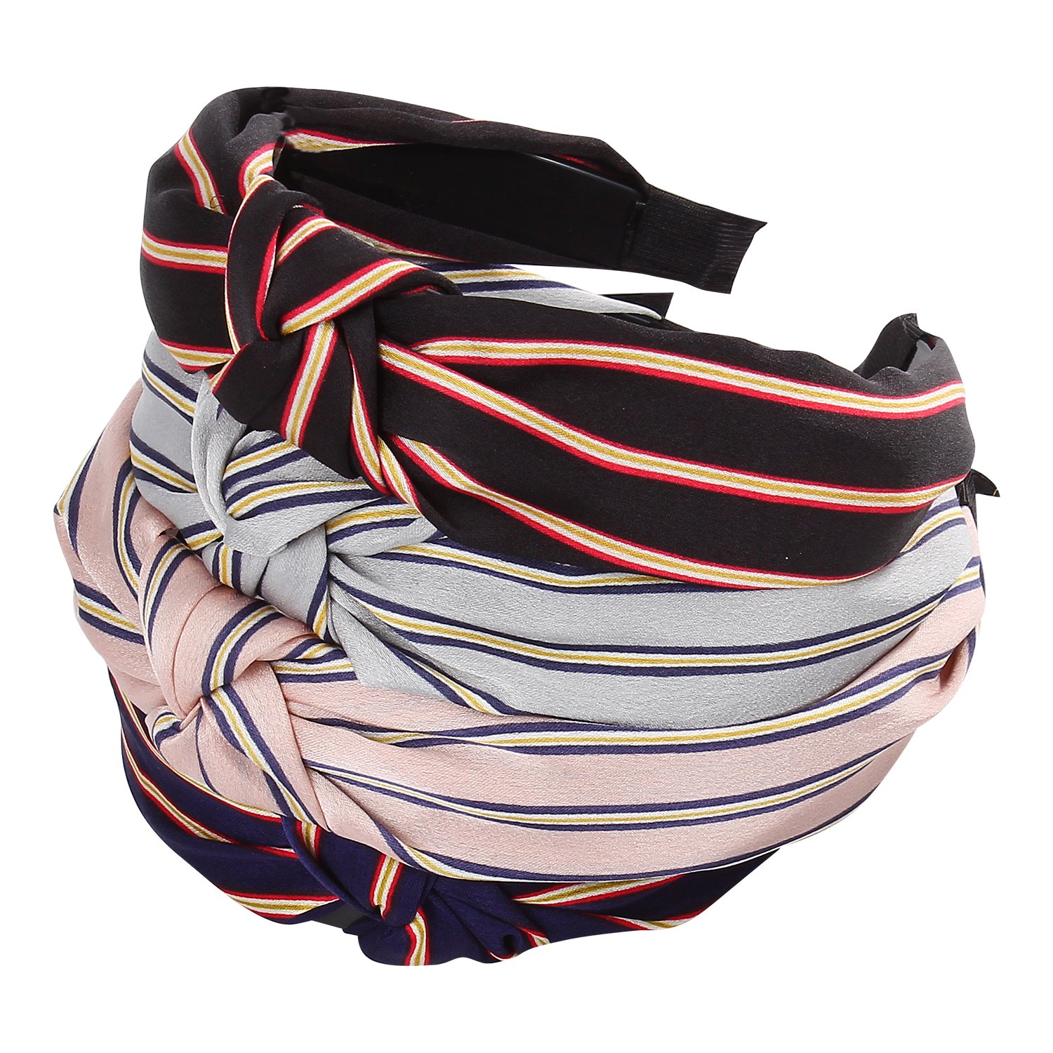 Tiara Turbante com Nó – Estampa Listrado – Pcte c/ 5