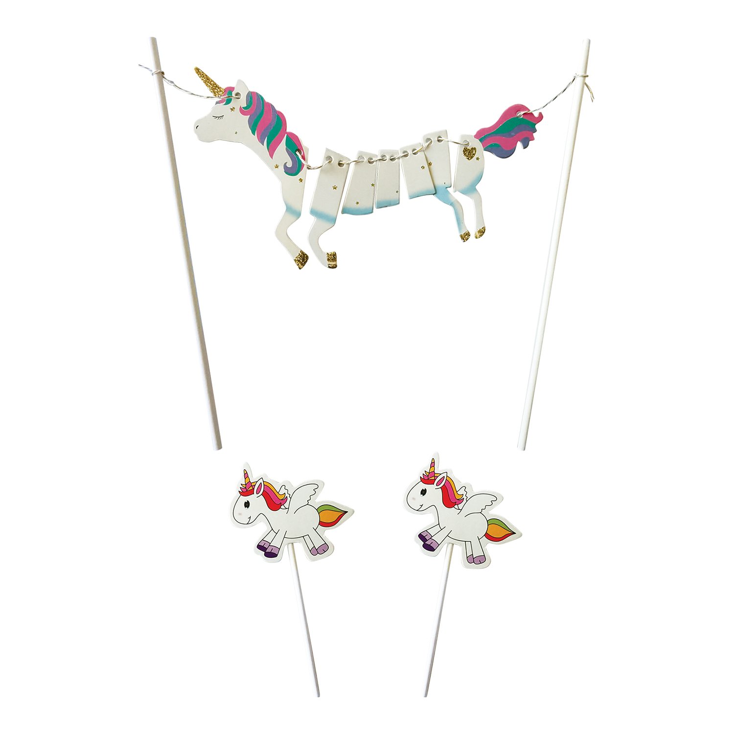 Topo de Bolo Unicornio Feliz Aniversário c/ 3 (17*20cm) quantidade
