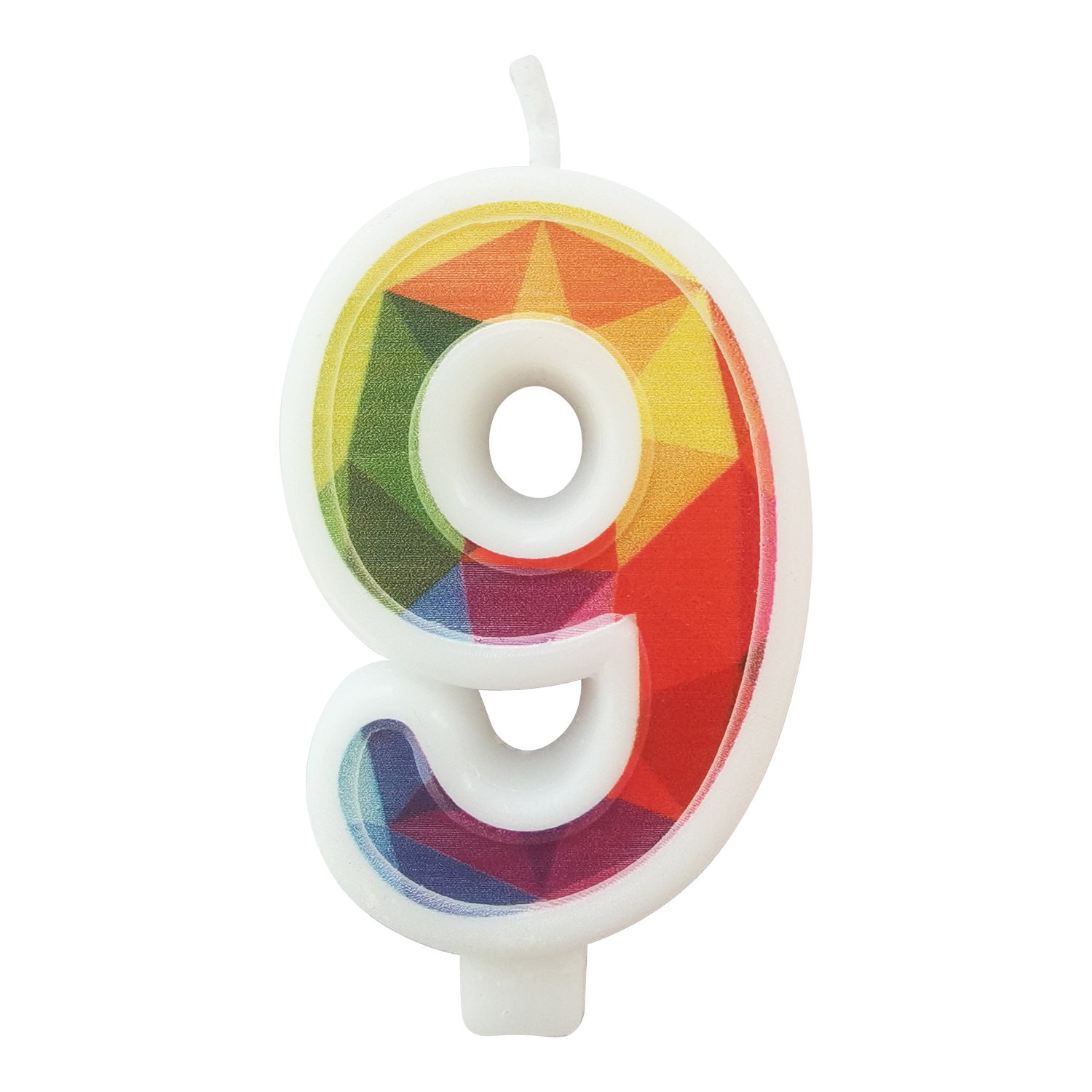 Vela Estampada 9,5 cm Colorida "9" quantidade