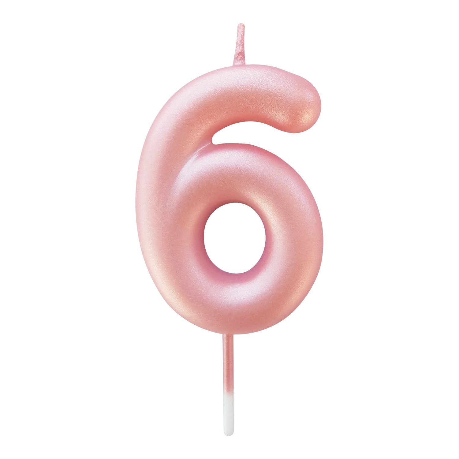 Vela Metalizada 6 cm Rosa Bebe “6”