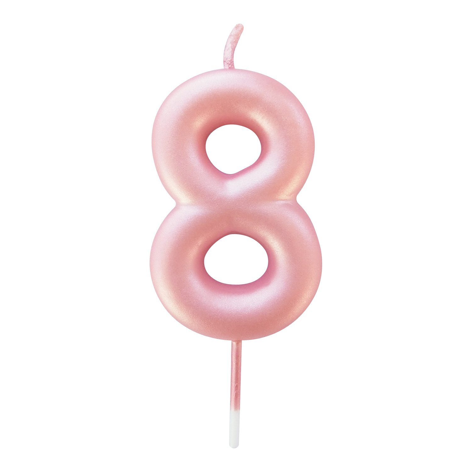 Vela Metalizada 6 cm Rosa Bebe “8”