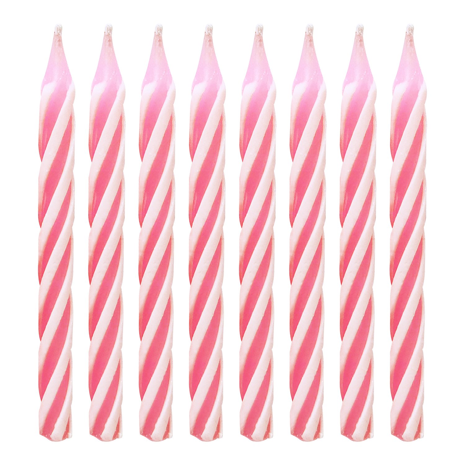 Vela Palitinho Espiral 0,5X6 cm Rosa Listrado c/ 24 quantidade